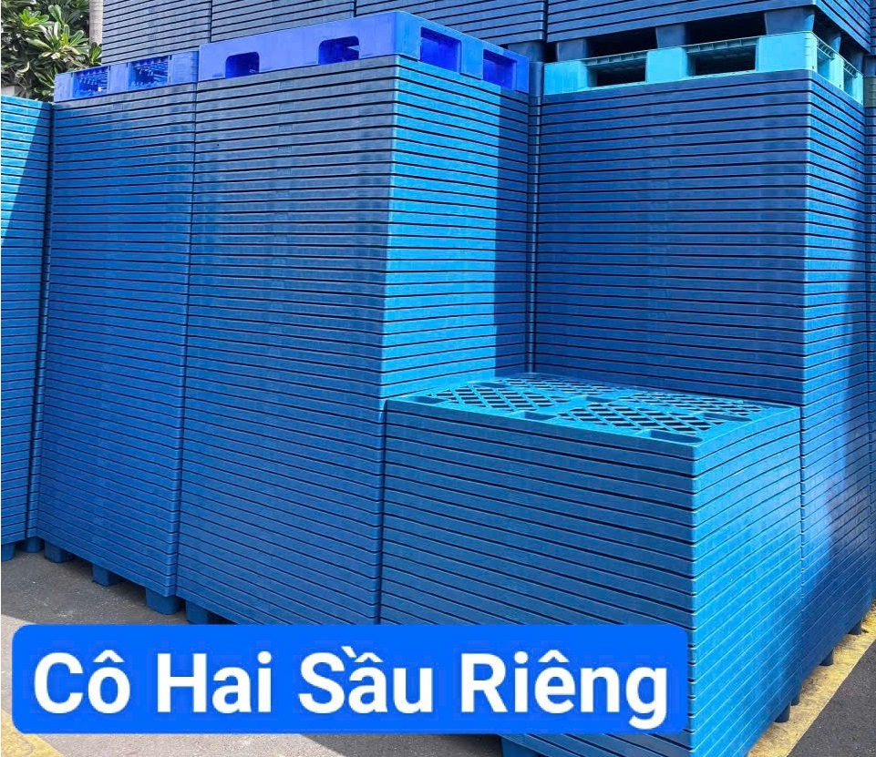Pallet nhựa kích thước 1200x1000mm là chuẩn thông dụng toàn cầu, tương thích với hầu hết xe nâng và kệ chứa hàng trong nhà máy, kho lạnh, container.