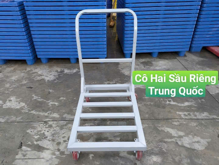Xe đẩy hàng tại Cô Hai được làm từ thép, inox, hợp kim chất lượng cao, bánh xe cao su hoặc PU bền bỉ, chống trượt, chịu lực tốt.